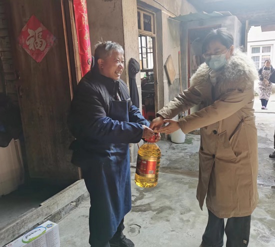 在走訪慰問中,林偉琴和老人親切地拉起了家常,詳細了解他們近期的生活情況、身體狀況,以及目前存在的主要困難,叮囑村干部要照顧好低保老人的晚年生活,有什么需要及時聯系,并送上了大米、食用油、牛奶等年貨。被訪的一位老人表示:“學校一直把我們放在心里,每年都來看望,真的非常感動。”