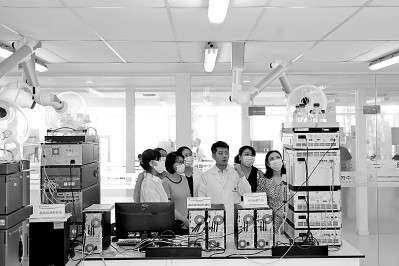 來自企業的帶教老師帶領職業院校教師們在天津現代創新中藥科技有限公司的實驗室內交流學習。劉東岳攝/光明圖片