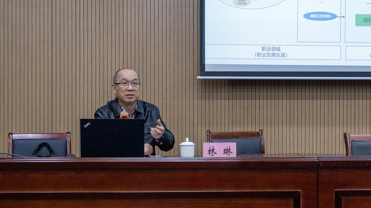 廈門技師學院原教改辦主任,廈門市技師協會副會長林琳為學院教改專業教師作專題講座,通過課程改革,改善教學模式,提升教學方法、評價體系,促進師資隊伍建設,改良教學設備設施等精準定位一體化課程改革。以工學一體化課程為載體,企業專家提供指導,培養優質精英技能人才。