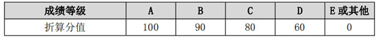 普高招生考生是將考生的高中學考成績等級折算為相應的分值,再按各招生專業的學考科目折算規則進行折算,滿分100分,四舍五入后保留兩位小數。普高招生考生學考科目成績具體折算表如下: