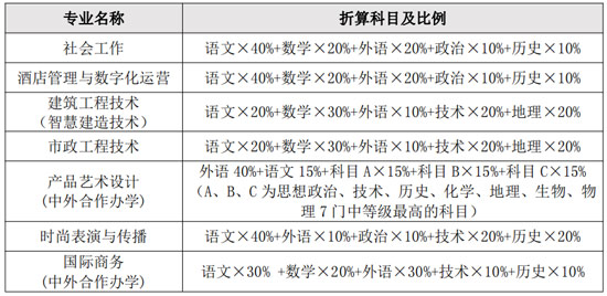各招生專業的學考科目折算規則如下: