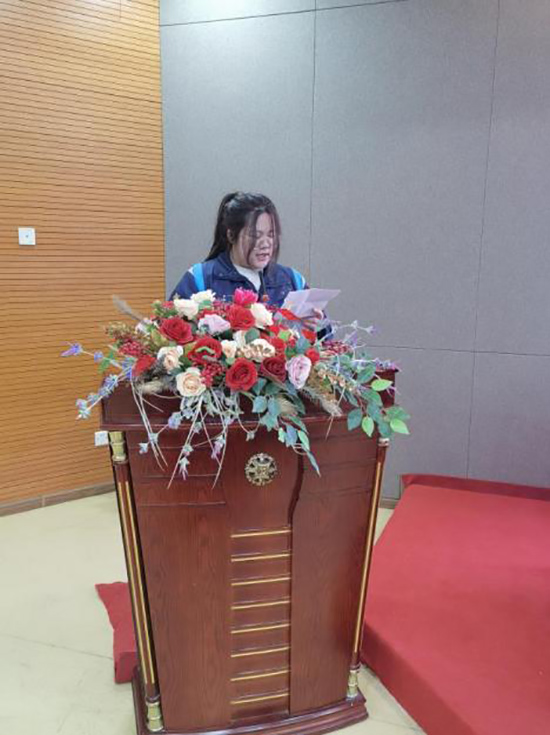 旅服201班的俞嘉雷同學(xué)代表全體實(shí)習(xí)生發(fā)言,她表明在工作中要認(rèn)真勤奮、踏實(shí)學(xué)習(xí)并快速適應(yīng)身份轉(zhuǎn)變、提升專業(yè)技能!
