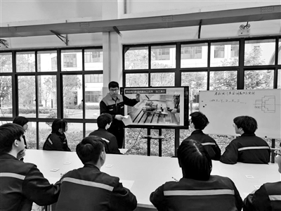 在中高職銜接共同體——永嘉學院,閥門專業教師在智能制造實訓現場給學生講解閥門零件的加工工藝流程。本報記者 鐘偉 攝