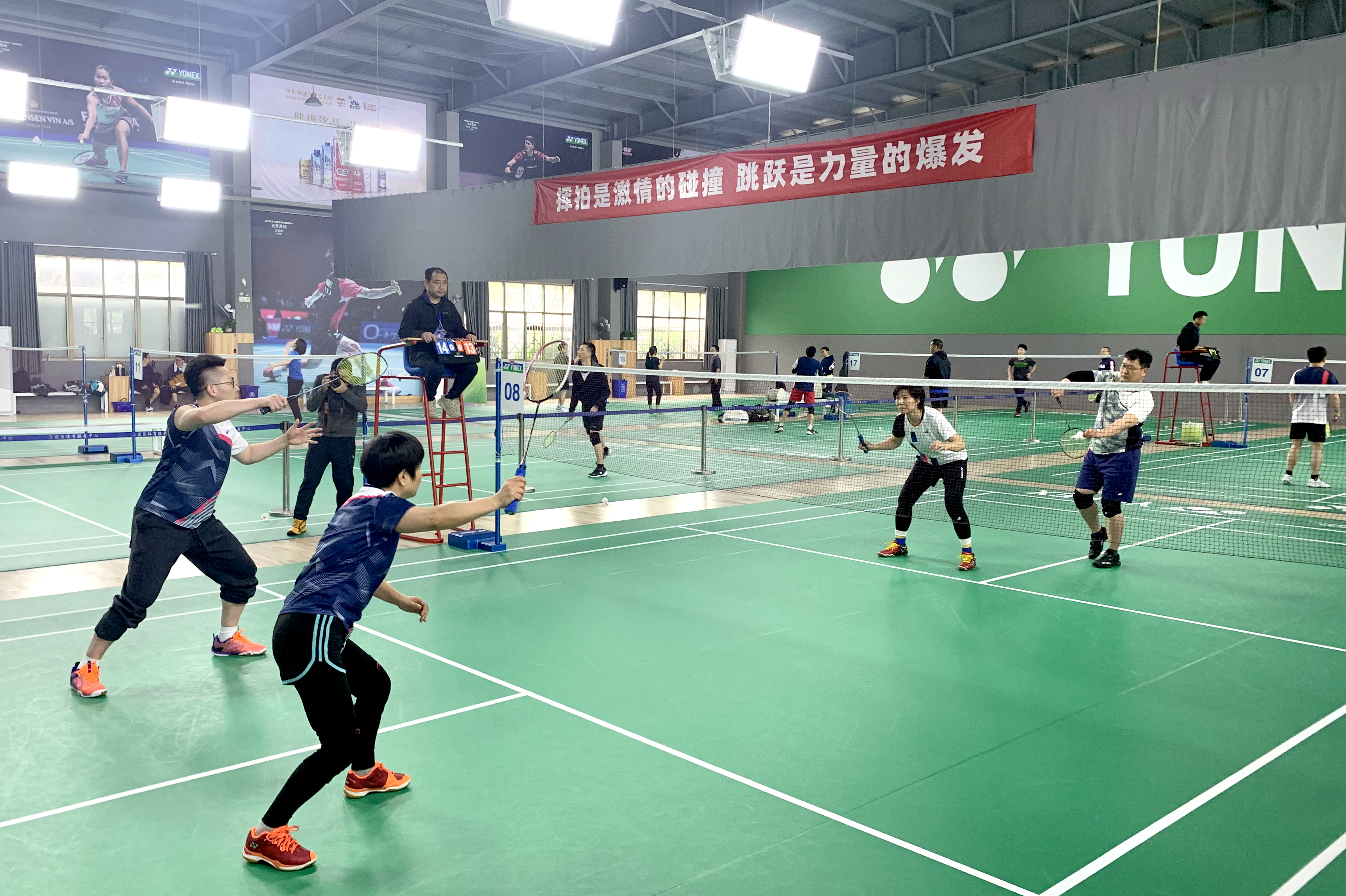 賽場上,隊員們團結一心,眾志成城,使出渾身解數,盡情展現出羽毛球技術中的劈、吊、殺、搓、拉的全面技術,上演了一場又一場緊張激烈且扣人心弦的精彩對決。特別是曹歡和劉慧琴這對混雙選手,在所有對陣比賽中,以全勝戰績一路高歌猛進,是隊伍中取勝的壓艙石。曹歡老師正在準備紹興市“教師教學能力大賽”,可謂百忙之中擠出參賽時間,最終成功助力整個團隊披荊斬棘,載譽而歸。