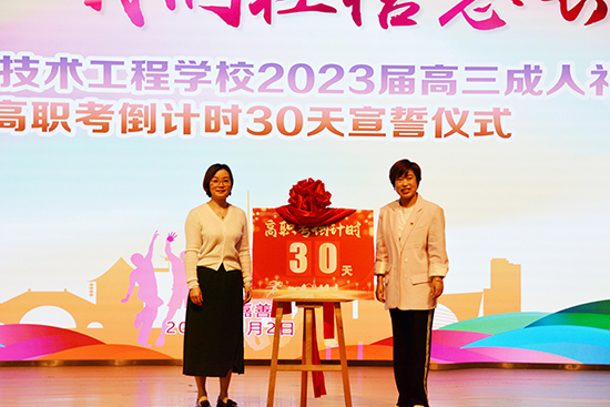 隨后,嘉善信息技術(shù)工程學(xué)校副校長(zhǎng)丁蕾和教務(wù)處主任趙愛琴為高職考倒計(jì)時(shí)30天揭牌。高職考在即,相信高三的同學(xué)們定能以嚴(yán)肅認(rèn)真的態(tài)度復(fù)習(xí)備考,以高昂的斗志、飽滿的精神沖刺高考,收獲成功。