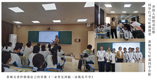 黃梅寶老師以德國作家歌德的小說《少年維特的煩惱》導入,與同學們分享了小說中最熱烈、美好的愛情故事,并借小說題詩“哪個少年不鐘情,哪個少女不懷春,這是我們人性中的至神至圣啊”,表現出對少年時期學生的心理特點的理解。