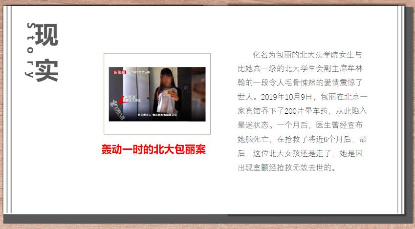 當理想照進現實,美好的愛情故事背后,卻可能有著殘酷的真相。接著,黃老師為大家講述了轟動一時的“北大包麗”案,以大量的新聞圖片、聊天記錄向同學們展示了包麗被精神“謀殺”的全過程,用包麗服藥自殺、牟林翰服刑告終的結果向所有同學表示:“北大包麗案件”不過是社會萬象中的一例,但作為一個沉痛的悲劇,它代表的是眾多青年男女對感情的錯誤認識、理解,對三觀的誤解。對于任何一個人而言,愛一個人的前提自愛、自重和自信。作為現代青年,可以選擇愛,也可以選擇拒絕,希望同學們要懂得自愛、學會求助、學會理性看待感情。