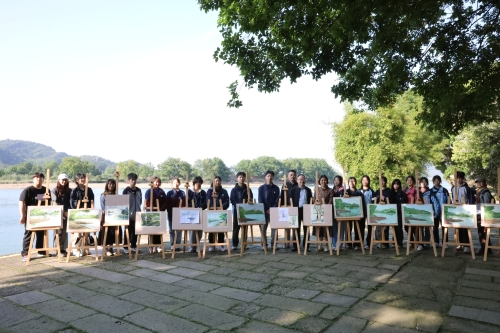 在麗水古堰畫鄉,兩校兩支繪畫團隊在聚精會神地畫著。每一個代表隊由一名任課教師和8名學生組成,在規定時間內共繪一片山。江南古鎮古樸自然的風光吸引著師生們的目光,將如此優美的景色畫在紙上,文藝氣息與專業技能在畫筆間凝練。通過現場繪畫,不僅鍛煉了繪畫技能,還認識了同齡的朋友,增進了友誼,促進了成長。