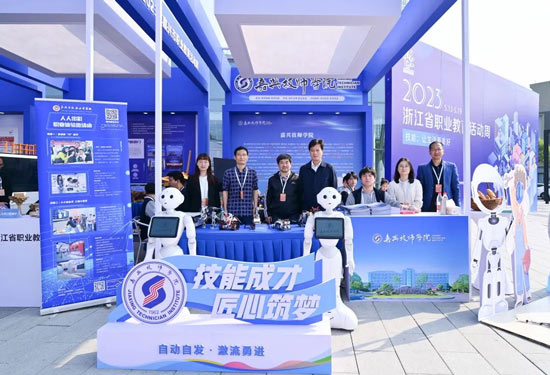 ▲嘉興技師學院黨委書記、校長張永芳與參展師生