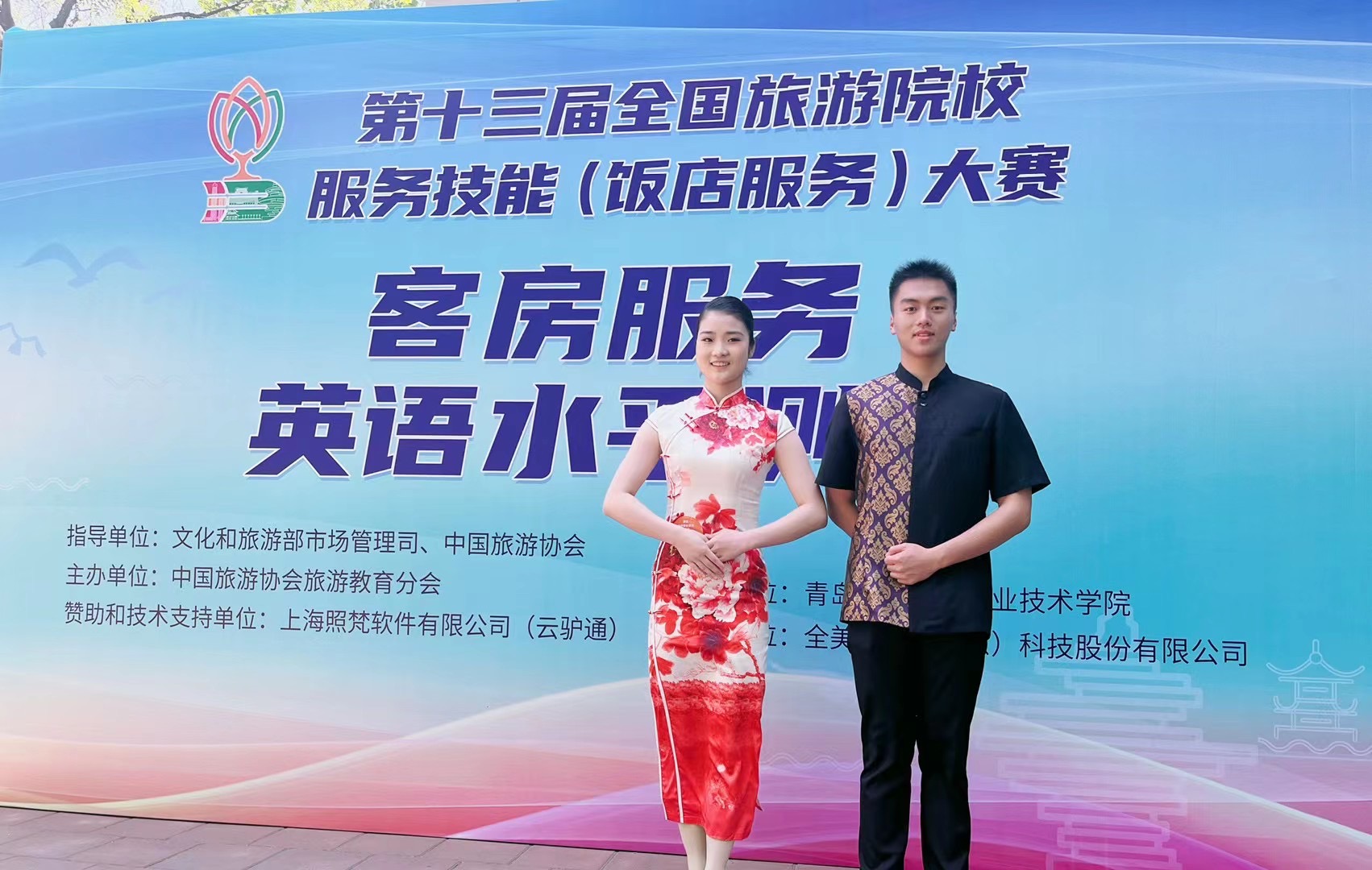 5月11日,由文化和旅游部市場管理司、中國旅游協(xié)會指導(dǎo),中國旅游協(xié)會旅游教育分會主辦,青島酒店管理職業(yè)技術(shù)學(xué)院承辦的第十三屆全國旅游院校服務(wù)技能(飯店服務(wù))大賽在青島開幕。紹興財經(jīng)旅游學(xué)校20旅游2班李灝然同學(xué)榮獲客房服務(wù)賽項二等獎,21空乘1班楊舒同學(xué)榮獲在中餐主題擺臺賽項二等獎的好成績。