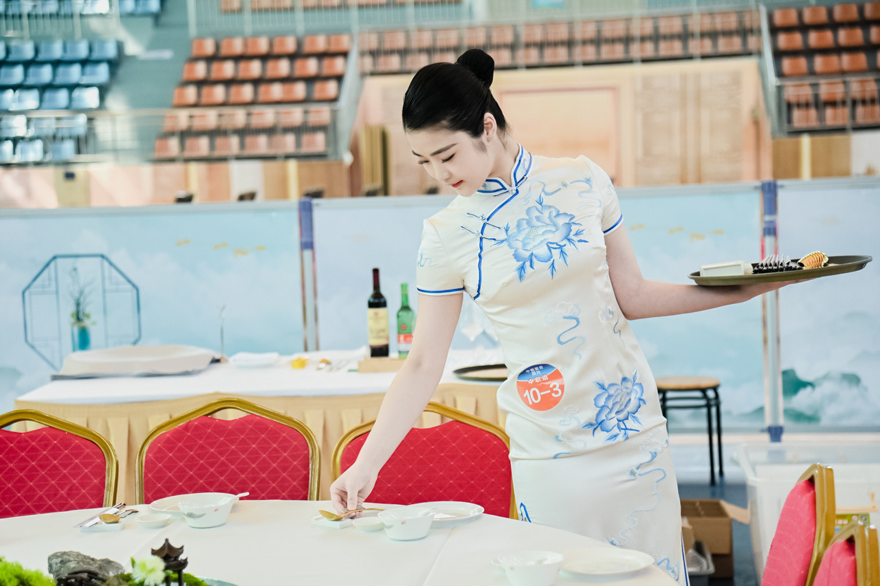 本次比賽分為理論機考、英語交流、中餐擺臺和中式鋪床四方面內(nèi)容,重點考核選手專業(yè)知識儲備、語言表達、禮儀展示、個人素養(yǎng)及臨場應(yīng)變等綜合能力。