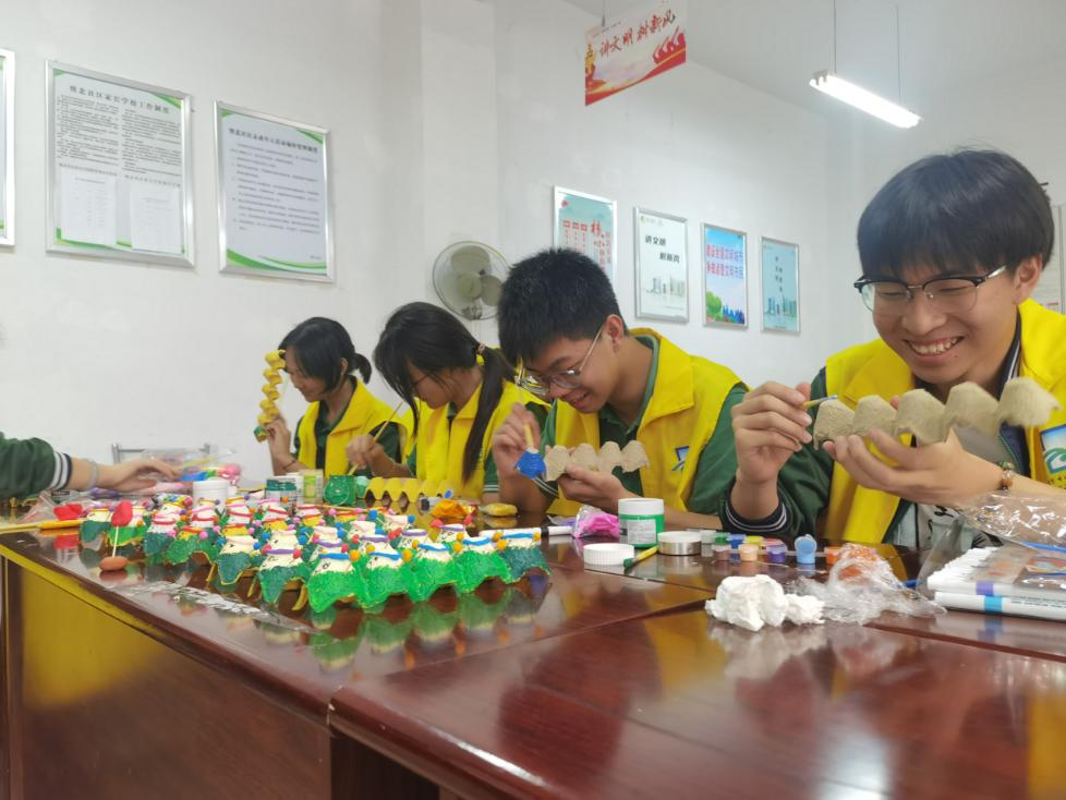 賽龍舟過端午,用雞蛋托制作的劃手們,一列列并排著,猶如參賽龍舟隊(duì)在比賽。賽龍舟是端午節(jié)的主要習(xí)俗,結(jié)合社區(qū)廢物利用,變廢為寶的活動(dòng),志愿者們將雞蛋包裝盒按豎條剪開,用雞蛋托表示劃龍舟的劃手,給每個(gè)雞蛋托上色,用黏土制作發(fā)帽,給每個(gè)雞蛋托的兩邊插上牙簽粘上黏土,一列列賽龍舟的劃手們就位啦!