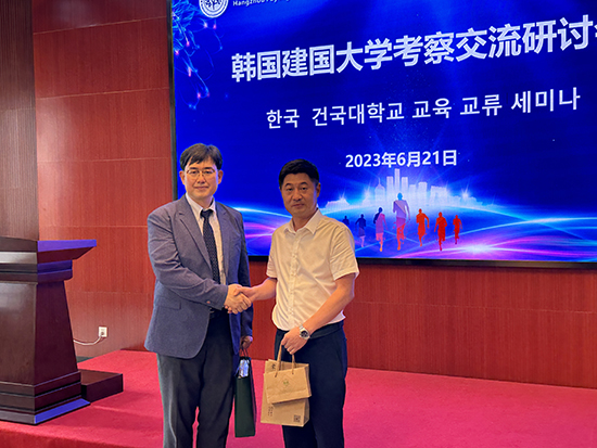 為提升學(xué)校辦學(xué)的國際化水平,共享國際教育先進(jìn)理念和優(yōu)質(zhì)資源,培養(yǎng)出更高端的國際化人才,杭州市富陽區(qū)職業(yè)教育中心和韓國建國大學(xué)開展合作,為更多學(xué)子提供優(yōu)質(zhì)平臺,暢通升學(xué)之路。6月21日,韓國建國大學(xué)國際教育院院長廉載雄、國際教育院科長李容熙、AICC國際教育中心董事長吳麗芳、AICC國際教育中心總經(jīng)理戚文劍等一行到富陽區(qū)職教中心考察交流,富陽區(qū)職業(yè)教育中心校長孫良杰、副校長陳建榮等陪同接待。