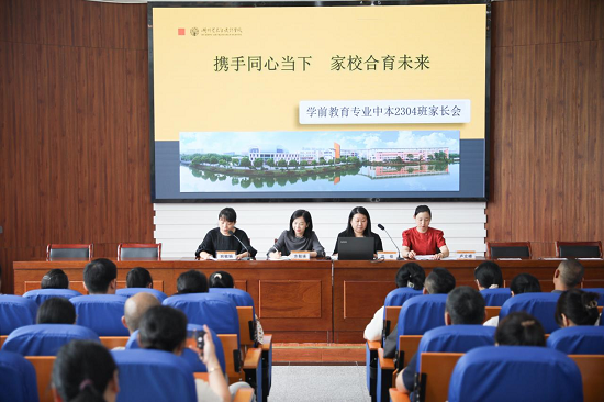 校長方毅瑛、教務處副處長沈佳、專業部部長姚敏娟、專業部副部長兼班主任盧立峰及全體中本班家長和新生參加中本一體化家長會。會議伊始,沈佳解讀中本一體的目標與定位;隨后,姚敏娟介紹專業部整體情況與中本一體師資配備、課程設置,解讀升學轉段方案;盧立峰介紹學校德育管理與班級管理的相關要求;會議最后,方毅瑛致辭。