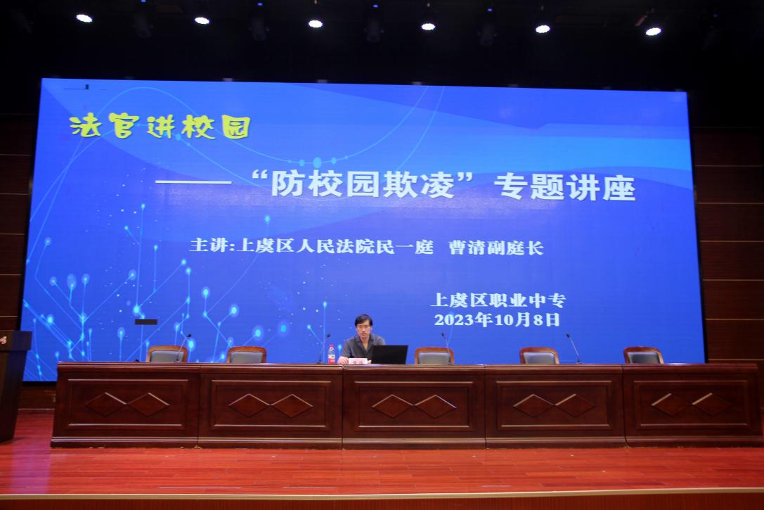 10月8日,紹興市上虞區職業中專特邀上虞區人民法院民一庭副庭長曹清在學校報告廳為全校學生開展“防校園欺凌”的專題教育講座。