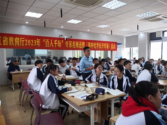 為持續(xù)提升教師專業(yè)素質(zhì),全面助力高質(zhì)量發(fā)展建設(shè)共同富裕示范區(qū),10月10日,2023年省教育廳“百人千場(chǎng)”名師送教下鄉(xiāng)長興專場(chǎng)活動(dòng)分別在長興縣華盛達(dá)實(shí)驗(yàn)學(xué)校(初中數(shù)學(xué))、長興縣太湖高級(jí)中學(xué)(高中化學(xué))舉行。本次送教由杭州師范大學(xué)繼續(xù)教育中心組織,全縣初中數(shù)學(xué)、高中化學(xué)學(xué)科教師近100人參加活動(dòng)。