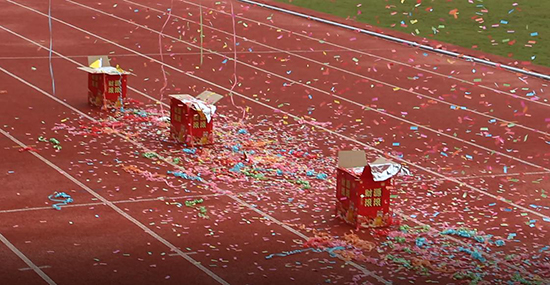 當星星運動之火在田徑場上點燃時,現場歡呼一片。火炬由優秀師生代表余志江、劉利寧、余艷蓉、徐國勤、毛麗雯、江日群、邵曉娟7位老師和潘晨瀾、傅利雅、葉誠3位學生以及優秀校聘員工胡雄明共11位師生共同完成接力。這不僅是簡單的火炬交接,它是前輩教師的標桿示范,是新生力量的青春活力,是衢旅精神“坤德含弘 匠心善美”的傳遞。當曾福田校長點燃衢旅校運會的“圣火”盆時,標志著在這場盛會中,每個青春應當“燃”不讓!
