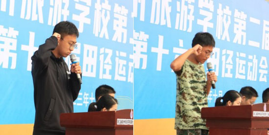 曾福田宣布“浙江省衢州旅游學校第十六屆運動會開幕!”