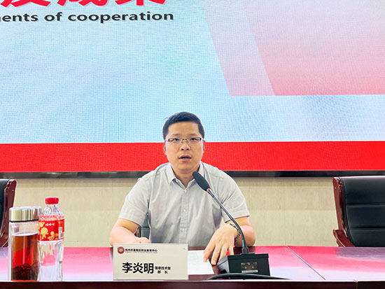 穆壯老師發言,他表示,將全身心投入到新一屆聯想班教學與管理中,按照既定計劃圓滿完成校企雙方教學任務和教學目標,通過聯想教育集團與學校的深度合作,為學生搭建更好的學習途徑和就業平臺。