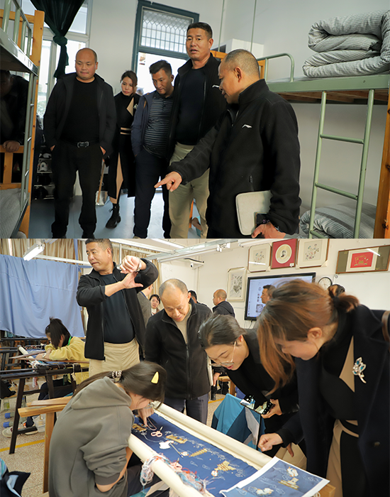 隨后,考察團一行來到學生寢室、教學樓及金銀彩繡工作室參觀。參觀過程中,考察團一行對標自己學校的寢室環境和專業文化建設,學習鄞州職高在學生管理模式、非遺文化傳承等方面的經驗。