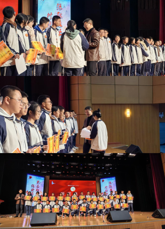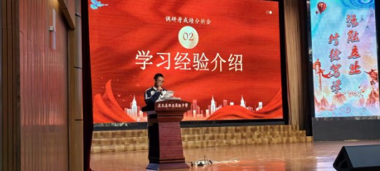 大會首先表彰了調(diào)研考成績優(yōu)異及進步明顯的學生,副校長鄭河南為他們頒獎。