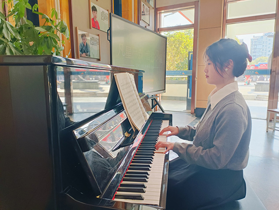 2217班陳楚浩同學,臨平職高器樂社社長,鋼琴十級,曾多次參加校園舞臺和合唱團的鋼琴伴奏并獲獎,他鋼琴演奏的《輝煌的大圓舞曲》和《海闊天空》獲得全場一致好評。2320班趙思源同學,鋼琴十級,曾獲2021年第五屆“央音”全國青少年藝術展演(市級)鋼琴獨奏第三名,她鋼琴演奏的《克羅地亞狂想曲》和《采茶撲蝶》也獲得全場掌聲。