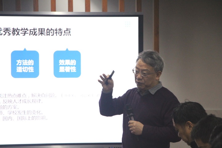 為提升衢州市職業教育省教學成果孵化項目培育的質量,本次活動特邀浙江省教育科學研究院副院長程江平蒞臨指導。程院長聚焦教學成果孵化,對教學成果評選的目的意義、教學成果的內涵特征以及教學成果與科研成果的區別等方面作了深入闡釋。