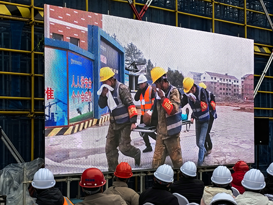 會上,全體人員觀看安全警示片,進行現場消防、醫護演練。項目經理、監理單位進行項目介紹和安全提示并作表態發言。隨后,縣住建局局長項文偉、縣教育局副局長吳林輝、縣職技校副校長吳根榮分別就安全生產進行點評。