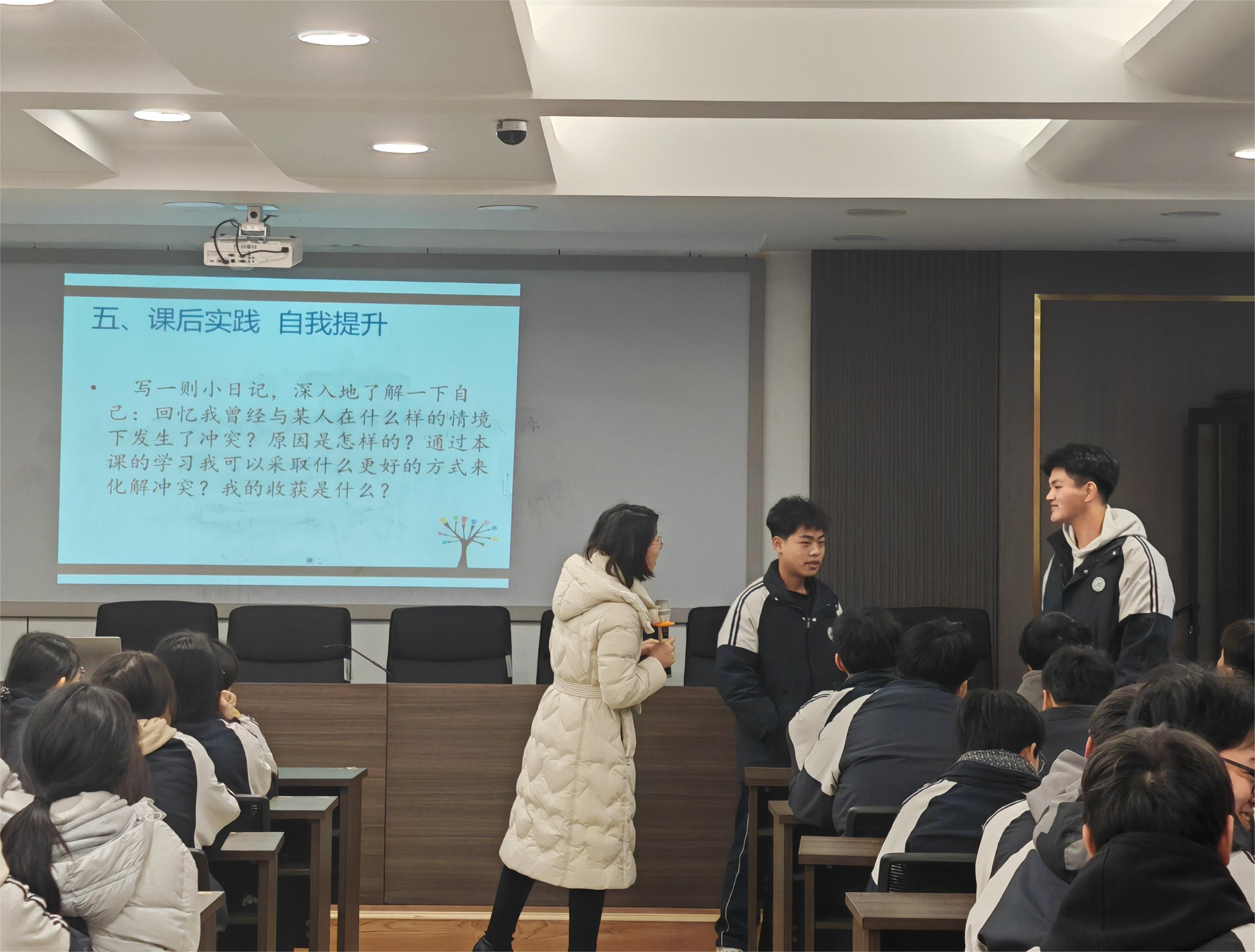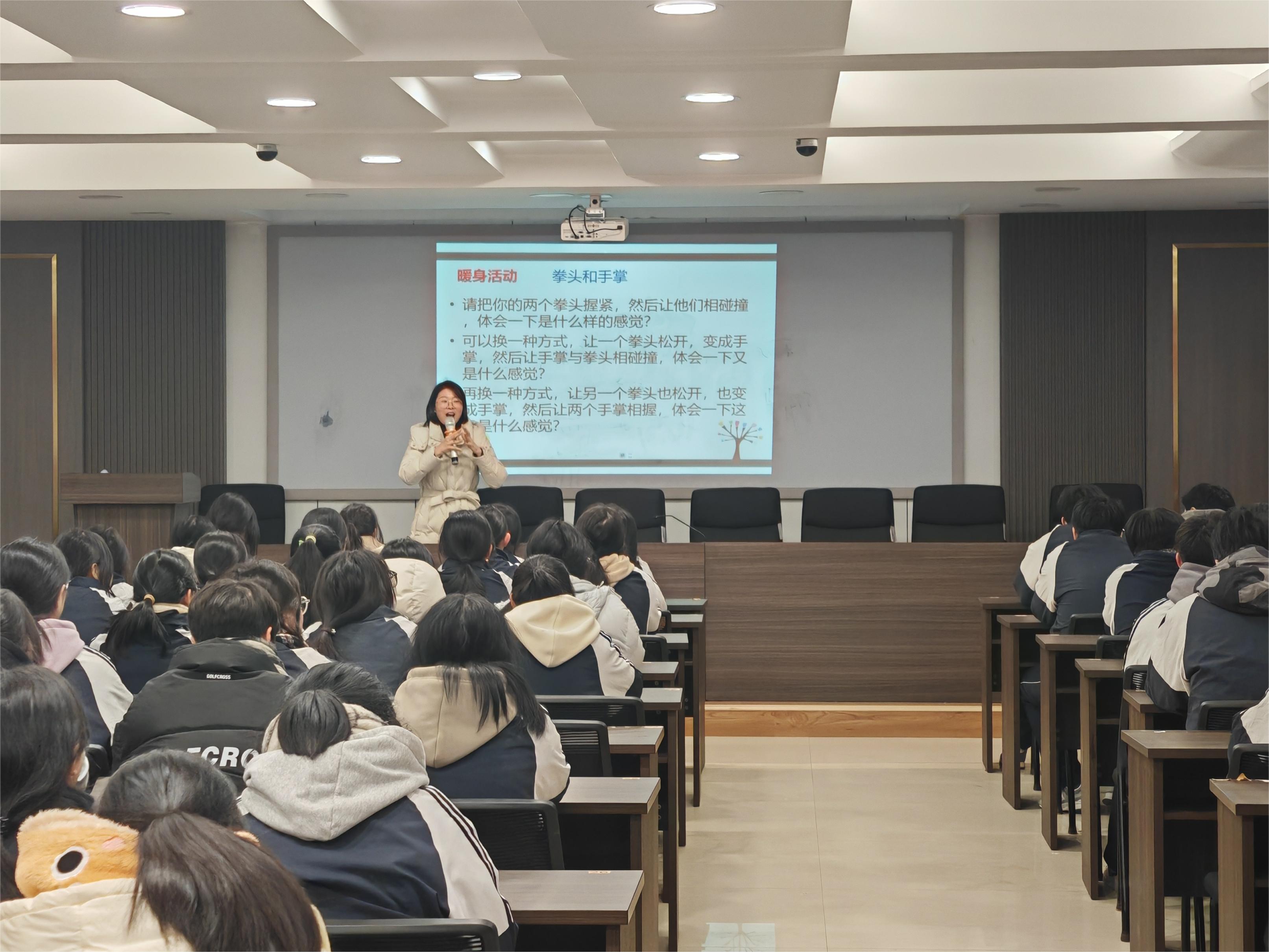 2月29日,麗水市云和縣教育局、縣團委主辦的云和縣2024年春季“開學法治、心理第一課”暨“三禁三防三自”教育活動走進云和職技校。活動之一“心理第一課”在大會議室舉行。心理老師曹亞麗以《巧化沖突 和諧相處》為題,為同學們帶來了一堂生動有趣的心理健康課。