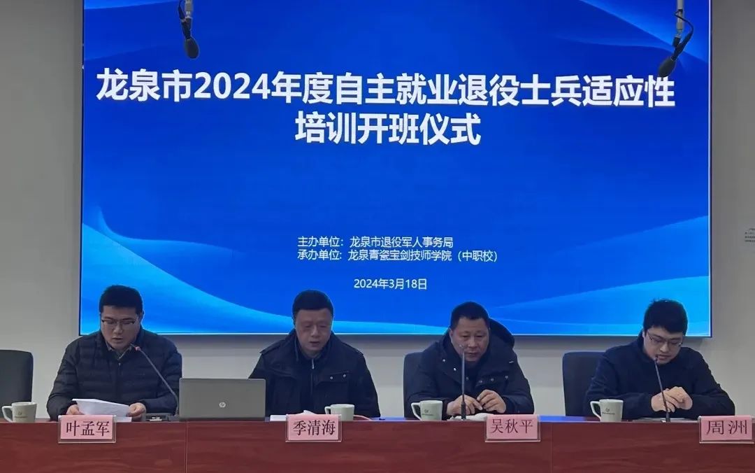 退役軍人作為黨和國家的寶貴財富,是建設中國特色社會主義的重要力量。為全面落實國家、省、市各級關于退役軍人適應性培訓工作的要求,幫助退役軍人提高就業(yè)創(chuàng)業(yè)的質量,盡快了解地方就業(yè)創(chuàng)業(yè)政策,實現(xiàn)高質量的就業(yè)創(chuàng)業(yè),3月18日至21日,龍泉市2024年春季退役軍人適應性培訓班暨返鄉(xiāng)大會在龍泉青瓷寶劍技師學院(中職校)順利舉辦。龍泉市退役軍人事務局、龍泉市人武部、龍泉青瓷寶劍技師學院(中職校)相關領導出席參加活動,21位退役軍人參加培訓。