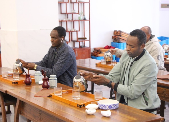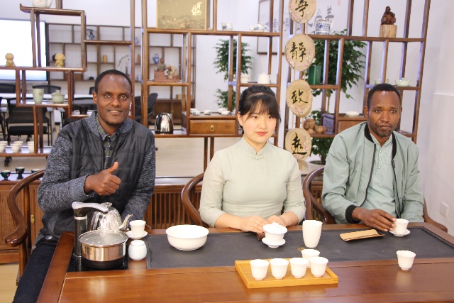 茶專業教師朱紅一為大家上了一堂開化龍頂茶沖泡體驗課。她詳細介紹了開化龍頂茶的歷史淵源、制作工藝以及品鑒方法,并親自演示了龍頂茶的沖泡過程。留學生們認真聆聽并現場學習、體驗了開化龍頂的沖泡技藝。”開化龍頂茶葉在杯中的造型很美麗,聞著特別清香。“聞著茶香,品著新鮮沖泡出的開化龍頂,留學生們贊不絕口。