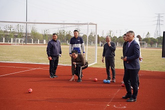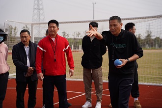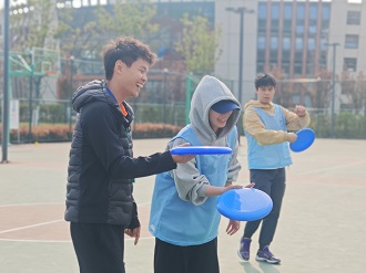 在午后互動環(huán)節(jié)中,老師們分成三組互相學習,分別體驗了英式橄欖球、飛盤和地擲球運動,感受了新興體育運動項目的魅力。