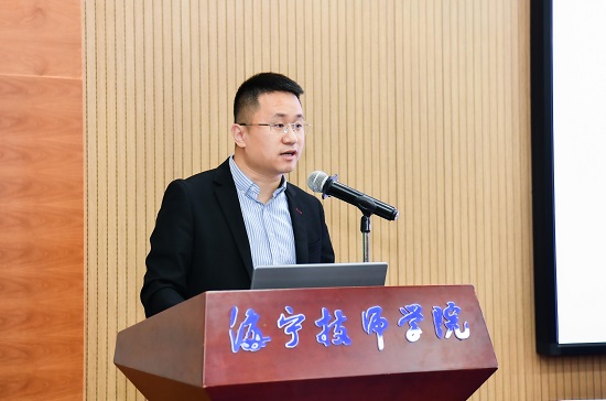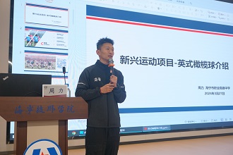 海寧技師學院黨委書記、院長陳海鋒介紹了學校辦學理念及學校體育工作。陳院長表示,此次活動是對學院體育工作的肯定和鼓勵,也是對今后工作的鞭策。學院將以承辦本次活動為契機,虛心接受各位專家和同仁的寶貴建議,進一步加強學校體育工作,厚植高技能人才成長沃土,為人才隊伍建設(shè)貢獻海技力量。