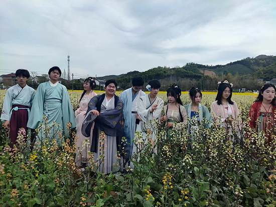 農校從2018年開設休閑農業專業,培養服務湖州休閑農業和鄉村旅游的人才。此次活動在帶教師傅的策劃和指導下,學徒主要分成漢服巡游和油菜花研學兩組開展研學實踐,部分學徒還登上鄉村舞臺進行了才藝表演。在崗位實訓中感受休閑農業的魅力和需要掌握的知識技能,農文旅融合賦能鄉村振興。