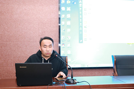 會上,教務處副主任王松對如何利用企業微信平臺進行直播授課進行了演示和講解。