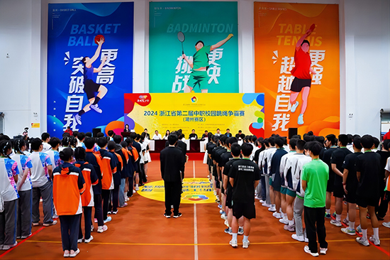 浙江信息工程學校黨委書記、校長崔燕榮代表學校向參賽的教練員和運動員表示熱烈的歡迎,向到場的嘉賓表示衷心的感謝。隨后,他介紹了學?;靖艣r,并表示學校一直堅持五育并舉,高度重視學生體育素養培養,培養學生全面發展,同時也希望通過這次比賽相互交流,共同提高。