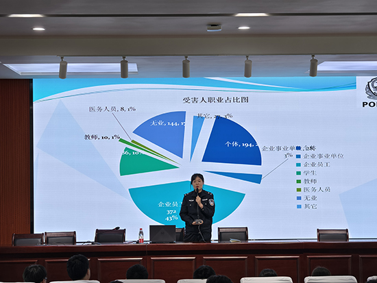 宣講會(huì)上,德清縣反詐中心金牌宣講員李小瓏警官通過(guò)PPT展示,詳細(xì)介紹了網(wǎng)絡(luò)詐騙種類(lèi)、易受騙群體以及作案手法等內(nèi)容。通過(guò)典型案例分享,重點(diǎn)為同學(xué)們講解了刷單返利詐騙、網(wǎng)絡(luò)交易詐騙、冒充熟人詐騙、網(wǎng)絡(luò)游戲虛假交易詐騙、殺豬盤(pán)詐騙等騙術(shù)騙局;還通過(guò)播放反詐宣傳視頻及現(xiàn)場(chǎng)問(wèn)答與同學(xué)們面對(duì)面互動(dòng)交流,提醒同學(xué)們?cè)谌粘I钪凶⒁獗Wo(hù)個(gè)人身份信息,要及時(shí)下載安裝國(guó)家反詐中心APP,牢記國(guó)家反詐專(zhuān)線96110和湖州市防詐熱線2250000,若被騙及時(shí)撥打110報(bào)警。