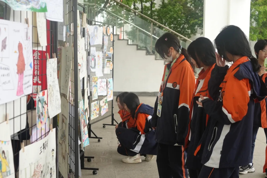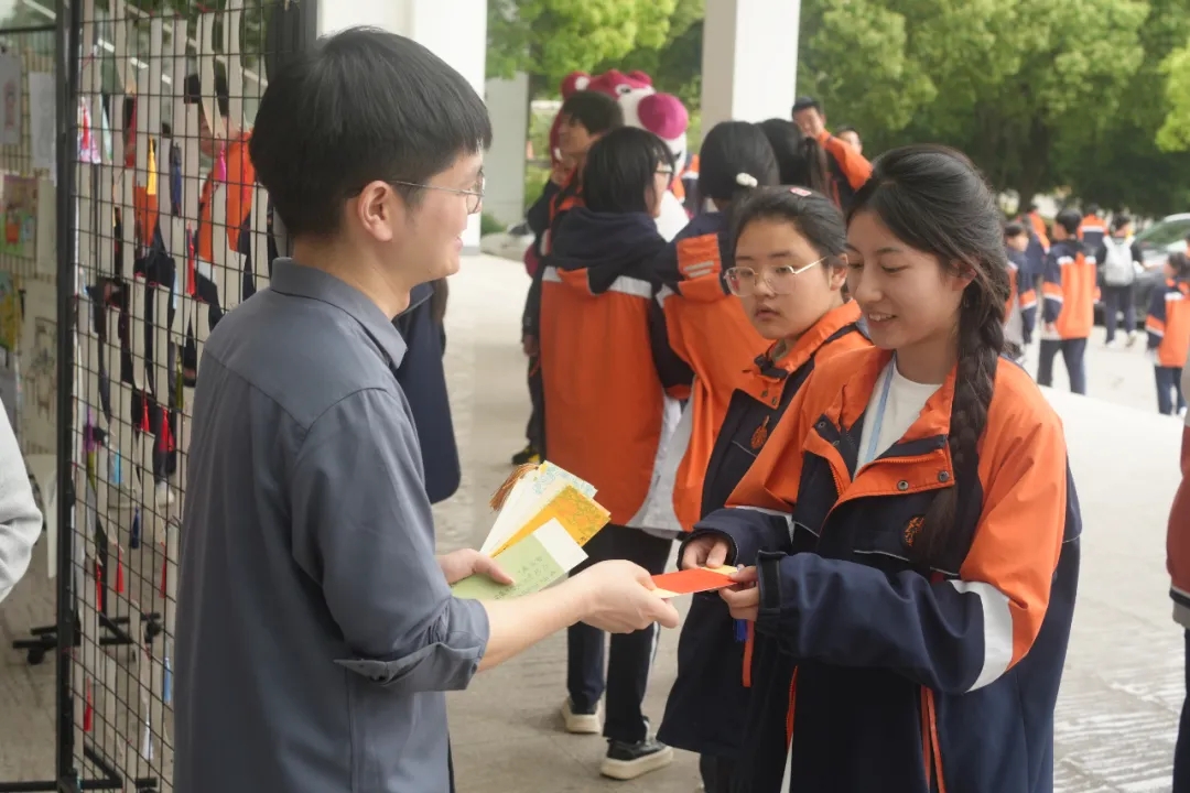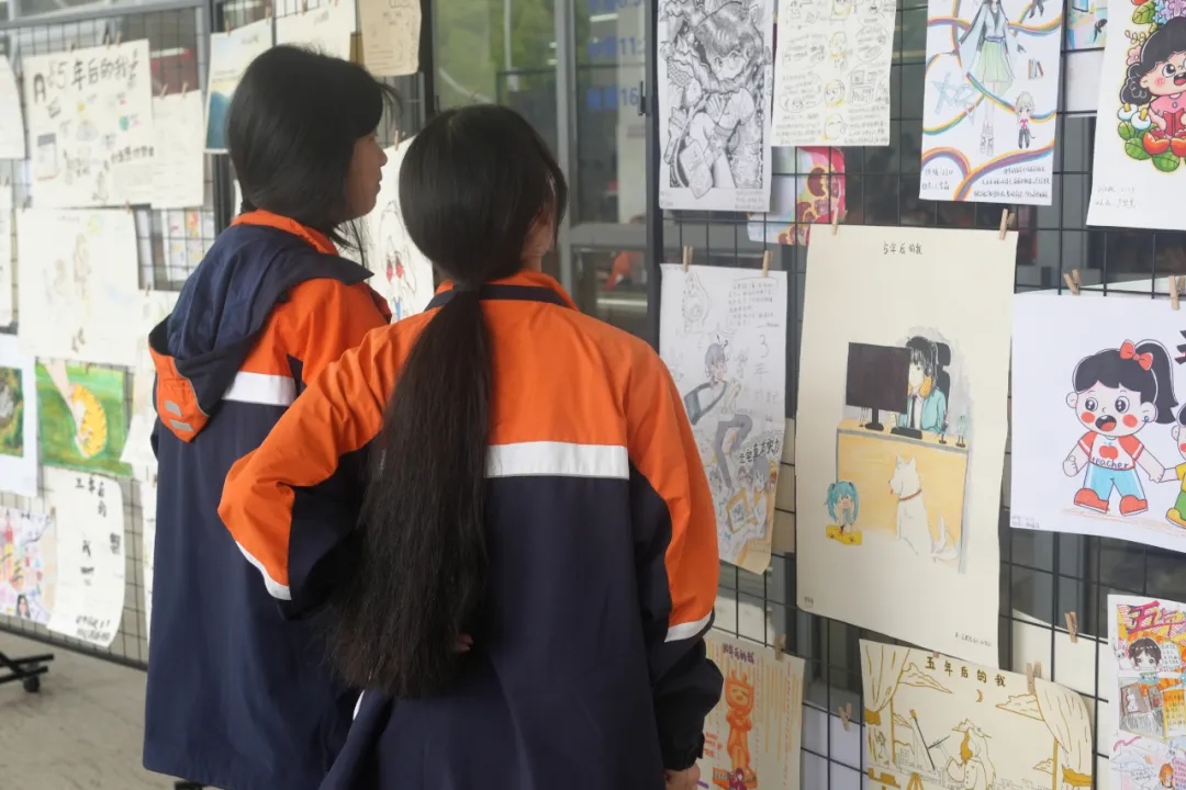 中午,“N年后的我”繪畫涂鴉活動的優(yōu)秀作品向全校師生進行展覽,同學(xué)們紛紛駐足賞析,時不時為創(chuàng)作者的靈感而驚喜,也為同伴的夢想而感動。滿含學(xué)生期許的“時空對話”書簽,字里行間流動著滿滿的能量,對未來的美好憧憬,一張張飽含心意的書簽由心理委員贈送給前來閱覽的學(xué)生,完成能量的傳播和夢想的接力。吉祥物草莓熊成為了流量密碼,她們的大方熱情,和學(xué)生的一次次擁抱溫暖而深情,治愈人心。