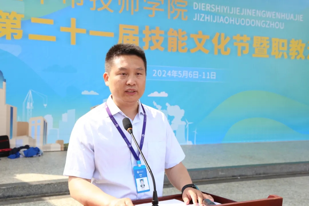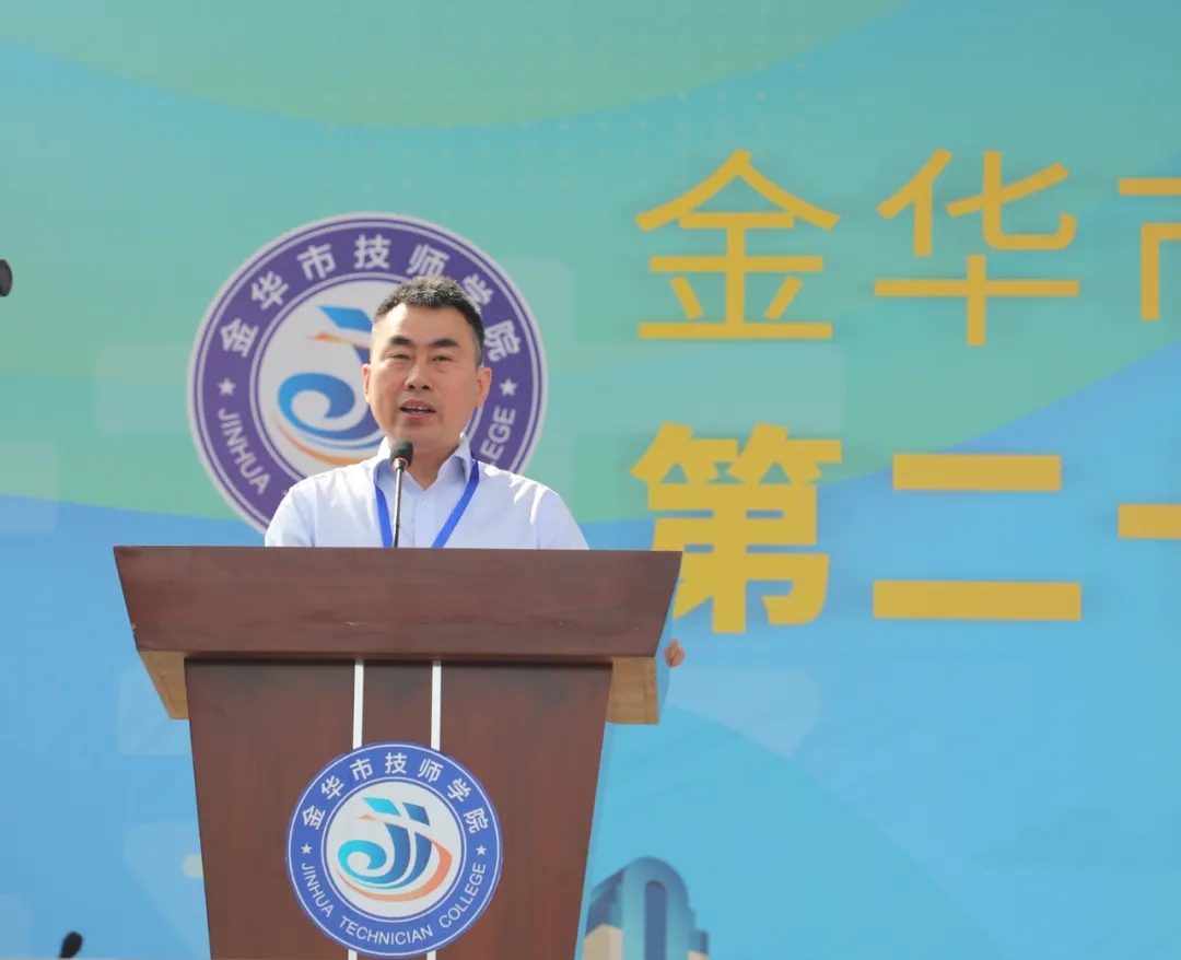 金華市技師學院黨委書記、校長、活動組委會主任劉云斌致開幕詞。劉云斌校長表示,全國兩會期間,習近平總書記強調,要實實在在地把職業教育搞好,要樹立工匠精神,把第一線的大國工匠一批一批培養出來。浙江省新春第一會上要求:加強“三支隊伍建設”,全力打造“高素養勞動者隊伍”是浙江建設之路的基礎支撐。“立德樹人”是國家大力發展技工教育的根本任務,“德技并修”更是培育大國工匠、能工巧匠的內在要求。我校作為市本級唯一一所技師學院,堅定貫徹國家政府政策方針,聚焦人才培養,爭創一流。他簡要總結了學校這一年顯著的成果,并期待全體師生都能積極參賽,百舸爭流奮勇爭先;共享盛會,沉浸競技比賽與文化藝術的熱烈氛圍。砥礪前行,以技能文化節為契機,把握新機遇,匯聚新能量,奮戰新征程,走出屬于金技的特色之路。