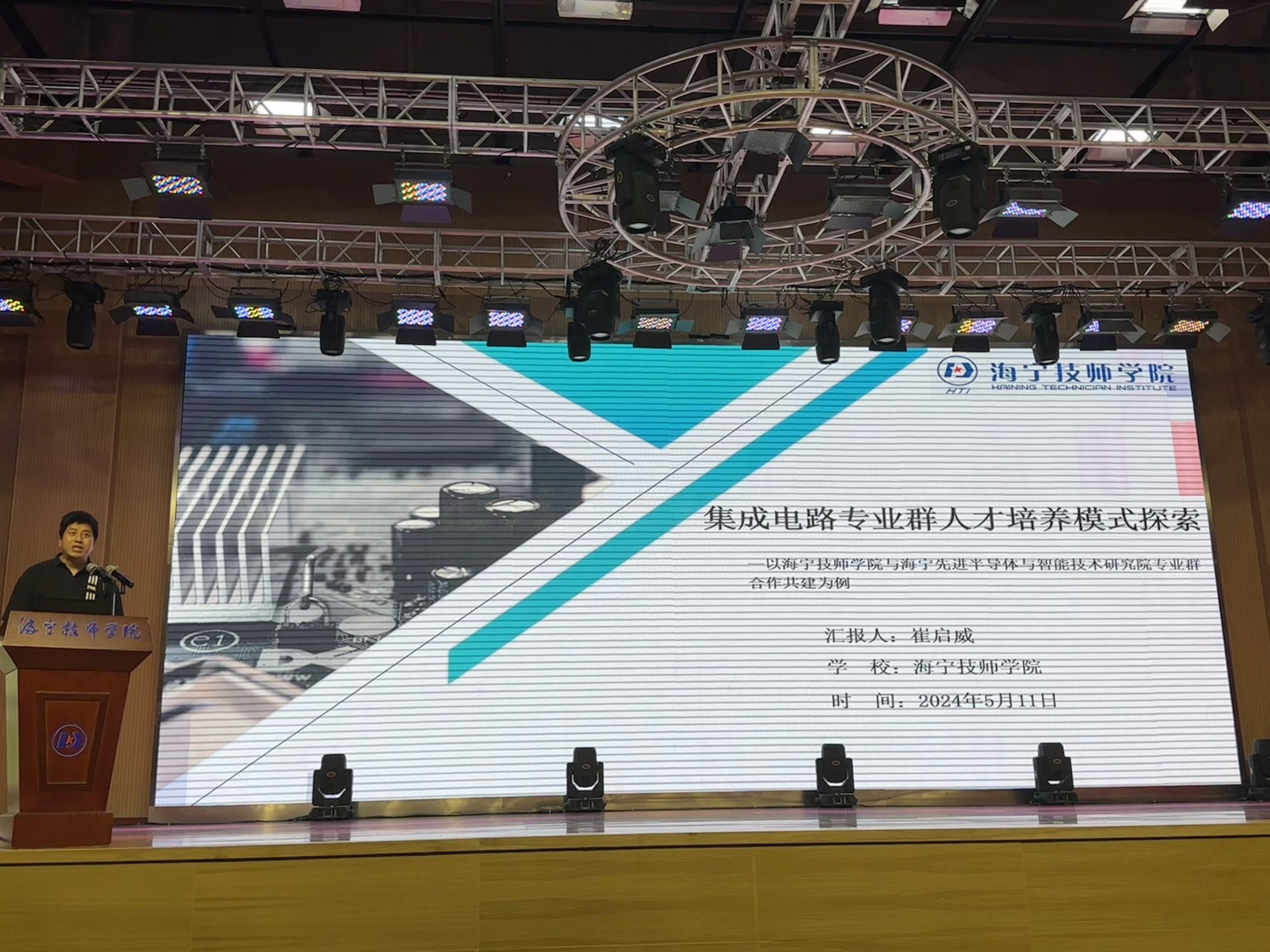 在人才培養(yǎng)模式探索環(huán)節(jié),海寧技師學院智能制造系副主任崔啟威圍繞“集成電路專業(yè)群人才培養(yǎng)模式探索”詳細匯報了海寧技師學院與海寧先進半導體與智能技術研究院合作共建案例匯報。他強調(diào)了產(chǎn)教融合的重要性,并介紹了雙方合作在人才培養(yǎng)、科研創(chuàng)新等方面取得的豐碩成果。