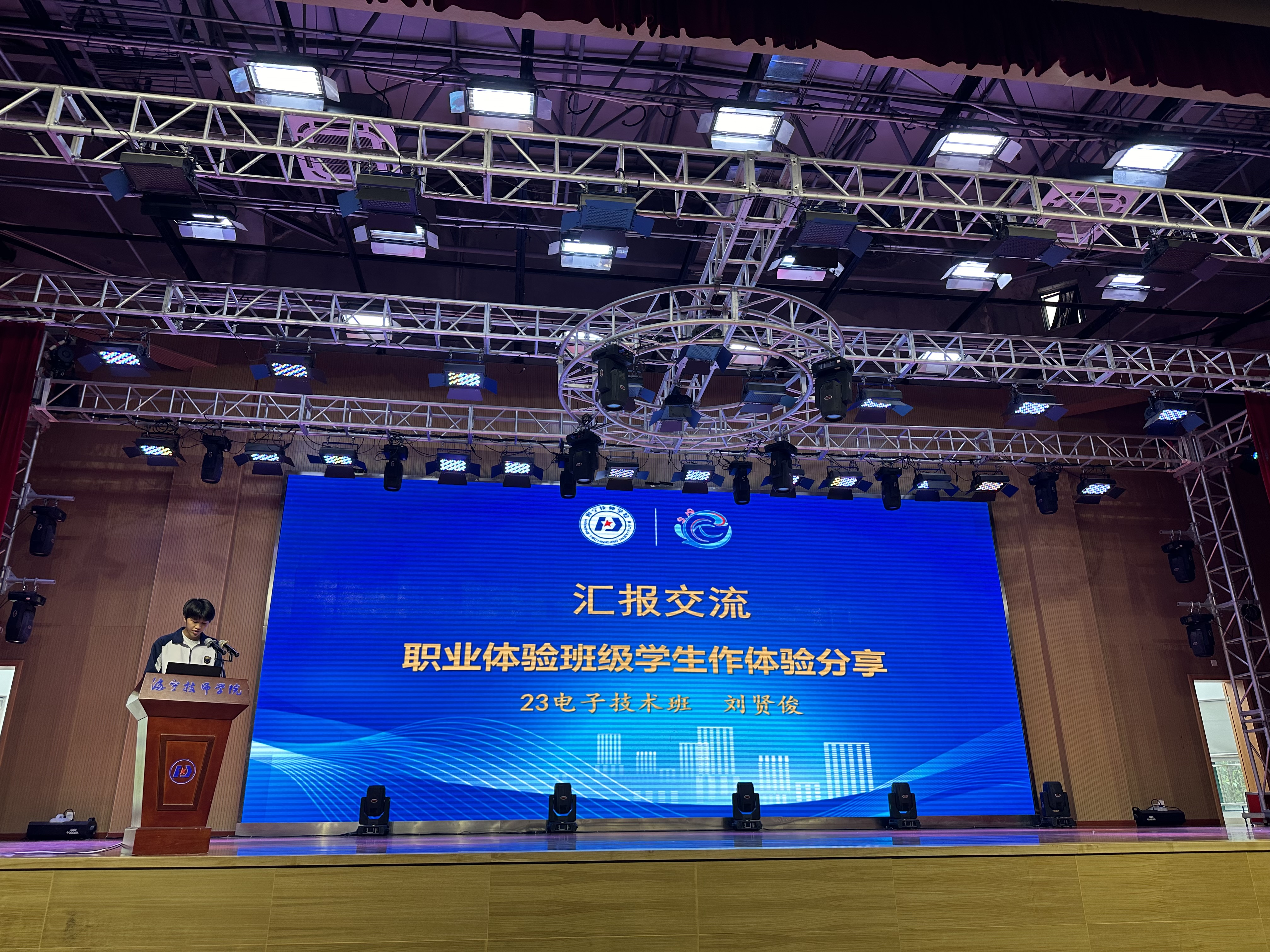 隨后,23電子技術班劉賢俊同學分享了他們在海寧市先進半導體與智能技術研究院的職業(yè)體驗活動經(jīng)歷。通過實地參觀、學習,同學們深入了解了半導體產(chǎn)業(yè)的發(fā)展趨勢,對未來的職業(yè)道路有了更加清晰的認識。