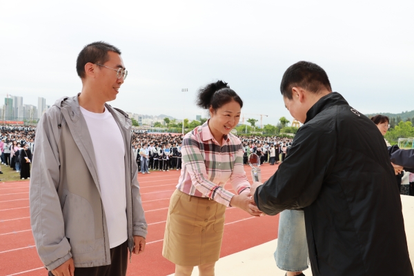 隨后,獲得特別榮譽(yù)表彰的班主任們?cè)谌熒牟毮肯拢柡钋榈乩收b《班主任頌歌》。他們的朗誦聲情并茂,表達(dá)了對(duì)教育事業(yè)的熱愛(ài)與執(zhí)著,也向全校師生傳遞了堅(jiān)守教育初心、勇?lián)耸姑膱?jiān)定信念。這一刻,他們的無(wú)私奉獻(xiàn)和辛勤付出得到了全校師生的高度認(rèn)可與尊敬,也激勵(lì)著更多的教育工作者繼續(xù)為教育事業(yè)貢獻(xiàn)力量。