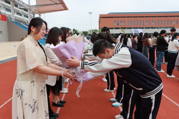 各班學(xué)生代表上臺(tái)為班主任們獻(xiàn)上鮮花,行謝師禮。班主任們的臉上都洋溢著欣慰的笑容。這些鮮花不僅是學(xué)生們的贈(zèng)禮,更是他們無(wú)私奉獻(xiàn)精神的象征。