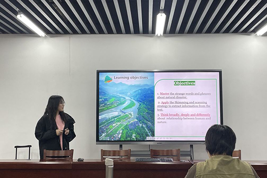 江柳燕老師的說課內容是中職英語外研社版基礎模塊1的Unit7 When Disaster Strikes中的“Reading and Writing”。她借助現代化教學手段調動學生學習積極性,融入巧妙設計,以活動方式引領課堂,讓學生在讀寫之中感受都江堰水利工程的巧奪天工與實際意義,進一步體會“天人合一”的環保思想,課程教學目標和課程思政目標均得以較好地達成。