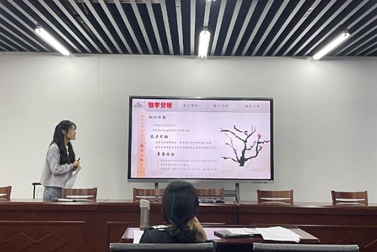 張優娣老師“會當凌絕頂,一覽泰山景”的說課內容選自高等教育出版社的《旅游文化》。張老師以微課預熱,利用ClassIn搭建師生互動平臺。通過希沃白板小游戲與VR全景等多種方式,加深學生對泰山景觀特征的了解,鍛煉學生導游詞撰寫、設計游覽路線的專業能力。課程活動形式新穎、課堂氛圍活躍。