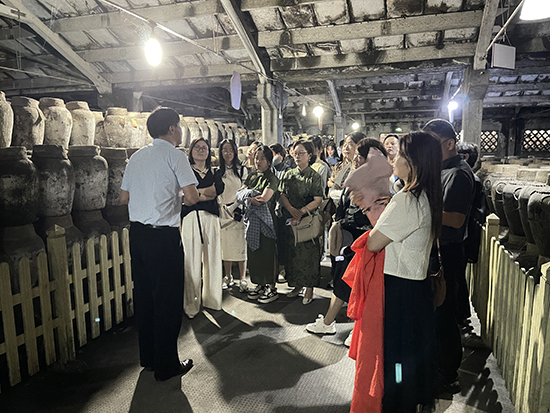 隨后,考察團(tuán)參觀了學(xué)校的校外教學(xué)實(shí)踐基地——古越龍山中央酒庫和安橋頭村“魯迅外婆家”景區(qū)。在古越龍山中央酒庫,考察團(tuán)成員聞著酒香,跟著講解員一道追溯紹興黃酒源遠(yuǎn)流長的歷史文化。他們在裝飾精美的花雕酒壇前流連,在一排排堆疊如山的陳年酒壇前打卡,欣喜之情溢于言表。在安橋頭村“魯迅外婆家”景區(qū),考察團(tuán)成員跟隨講解員先后參觀了祝福廣場、魯美動(dòng)漫基地、文化禮堂、朝北臺(tái)門等景點(diǎn),沉浸式感受著魯迅先生小時(shí)候在外婆家跟小伙伴們一起看社戲、釣河蝦、弶鳥雀、抓跳魚兒等有趣的童年生活。