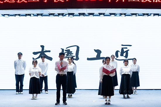 語文教研組帶來激情彭拜的《大國工匠,匠心筑夢》朗誦。以深沉而富有感染力的語言,展現了工匠精神的偉大與崇高。