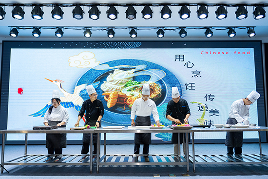 烹飪專業現場給大家演示了“用心烹飪,傳達美味”美食制作。在同學們的巧手下,一道道美味佳肴被擺上展臺,令人垂涎。
