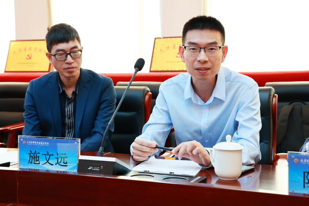 會議由李孟副校長主持。李孟詳細介紹了學校的發展概況,學校遵循“崇德尚技博學精工”的辦學理念,以服務發展為宗旨,以升學與就業為導向,創新育人模式,實現學生整體素質和綜合能力的和諧發展。