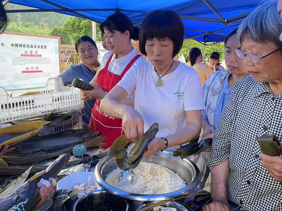 三天的培訓讓高棠村的鐘仙梅成了能熟練制作長粽的“手藝人”;在師傅指導下,全面掌握了長粽的精選材料、精準配料、精致包裹等關鍵技術,她還在結業考核中表現出色,順利獲得了由相關部門頒發的長粽制作專項職業技能證書。她開心地說:“獲得這份技能認證,意味著我可以用這項傳統技藝來增加家庭收入,為家里添一份力。未來,我希望不僅能通過包粽子養家糊口,還能將這份非遺文化傳承下去,讓大家嘗到地道的遂昌長粽。”